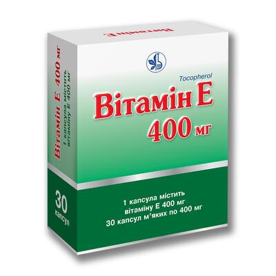 Вітамін E капсули м’які 400 мг блістер №30 ; Ціна товару: від 197.33 грн ; Ціна товару: 202 грн ; Основні властивості · Дорослим. Можна. allergic ! Алергікам. З …
