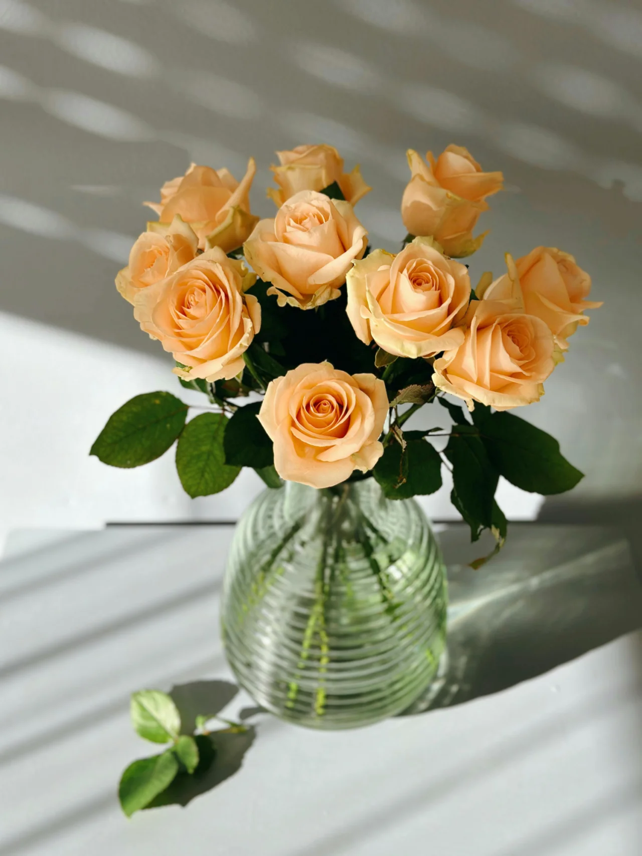 Щоб троянди не в'янули надто швидко, ставте вазу у прохолодне місце, подалі від прямих сонячних променів та джерел тепла. Не ставте вазу на радіатори та вікна, через які проникає сонячне світло. Крім того, слідкуйте за рівнем води у вазі. Якщо води буде недостатньо, троянди почнуть в'янути.