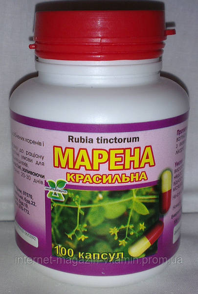 Марена фарбувальна знижує тонус і підсилює перистальтику мускулатури … тиск і дихання, підсилюють серцеві скорочення, не впливаючи помітно на ритм серця.